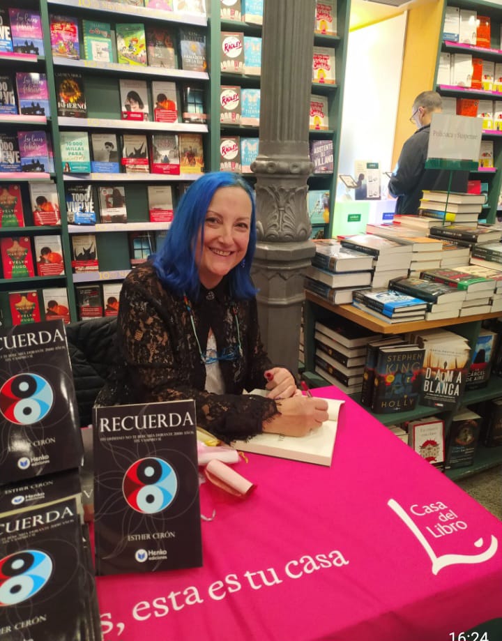 Nuestra autora Esther Cerón, estuvo el sábado 18 firmando ejemplares de su novela Recuerda en la casa del libro del barrio de Goya, en la calle Alcalá.
